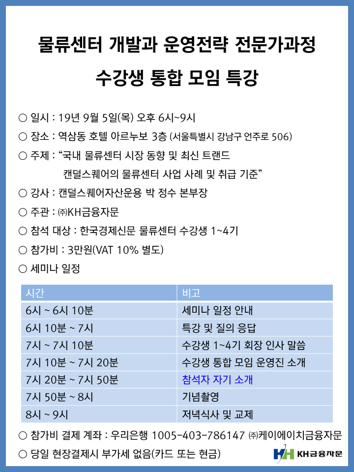 물류센터 개발과 운영전략 전문가과정 수강생 통합모임 세미나